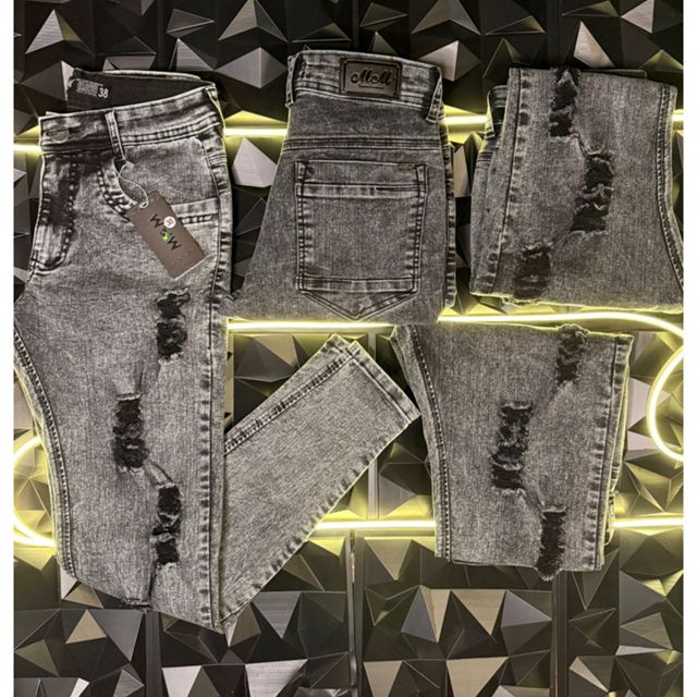 Calça Jeans Masculina Estilo Jogador Rasgada cinza com Elastano Slim Premium Moda Masculina marmorizada Envio Imediato integra a oferta da Shopee Brasil na subcategoria Calças (de Roupas Masculinas) por R$ 94,90 (27% de desconto sobre o preço original de R$ 130,00). Com avaliação de 4.9 de 5 estrelas e 405 unidades vendidas, este produto se destaca pelo excelente custo-benefício.