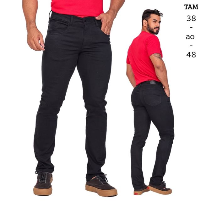 | Calça Jeans Masculina Preta com Elastano Slim Tradicional Confortáv... este produto | R$ 79,19 | 47% | 5.0/5 | — |