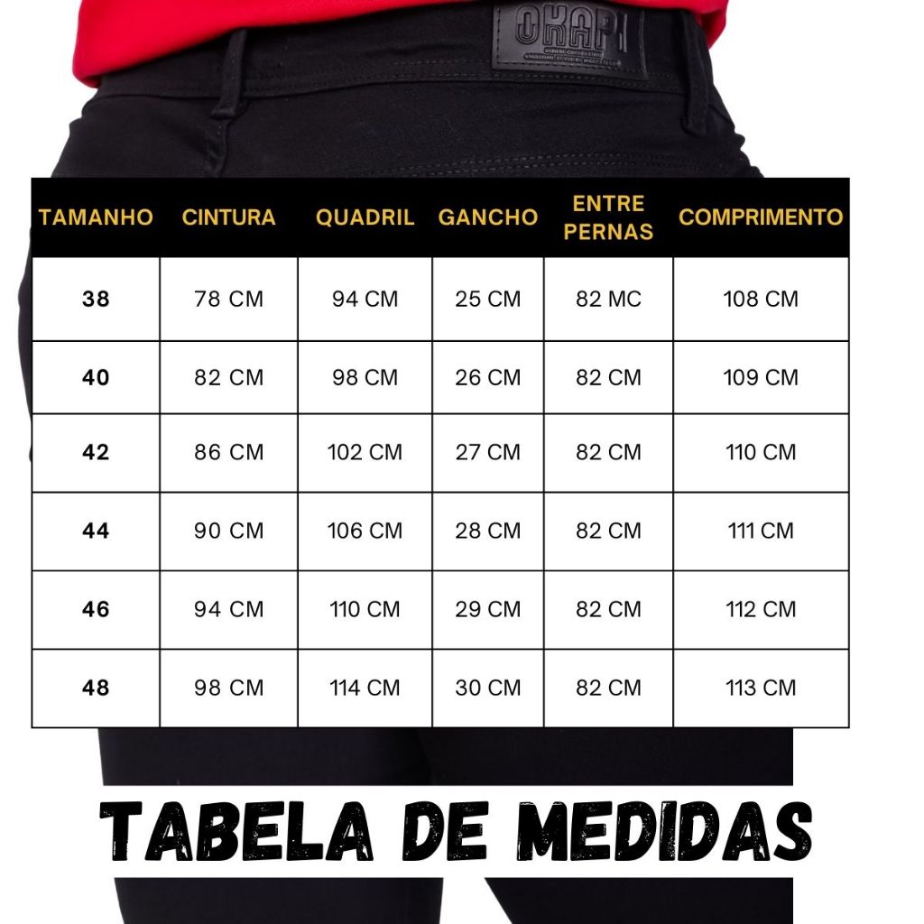 Calça Jeans Masculina Preta com Elastano Slim Tradicional Confortável Trabalho Passeio A Calça Jeans Masculina Preta com Elastano é ideal para quem busca conforto, resistência e visual moderno no dia a dia. Confeccionada em sarja com elastano, oferece elasticidade na medida certa, permitindo liberdade de movimento tanto para trabalho quanto para passeio. Seu corte slim tradicional garante um caimento ajustado sem apertar, enquanto as costuras reforçadas aumentam a durabilidade do produto. Conta com bolsos frontais e traseiros funcionais e fechamento prático, sendo uma peça versátil para uso diário. 🔹 CARACTERÍSTICAS Tipo: Calça Jeans Masculina Cor: Preta Tecido: Sarja com Elastano (Lycra) Modelagem: Slim Tradicional Elasticidade: Sim Bolsos: Frontais e traseiros funcionais Costura: Reforçada Fechamento: Zíper e botão Indicação de uso: Trabalho, passeio, uso diário Estilo: Básico, casual, profissional 🔹 TABELA DE MEDIDAS (EM CM) Tamanho Cintura Quadril Gancho Entre Pernas Comprimento 38 78 94 25 82 108 40 82 98 26 82 109 42 86 102 27 82 110 44 90 106 28 82 111 46 94 110 29 82 112 48 98 114 30 82 113 📌 Dica: compare as medidas com uma calça que você já usa para melhor escolha do tamanho. 🔹 BENEFÍCIOS E DESTAQUES ✅ Confortável e flexível para longos períodos de uso ✅ Tecido resistente e de alta durabilidade ✅ Ideal para trabalho ou passeio ✅ Visual moderno e versátil ✅ Modelagem que valoriza o corpo masculino Calça Jeans Masculina Preta com Elastano Slim Tradicional Confortável Trabalho Passeio.