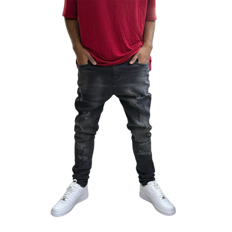 Descrição do Produto: Entre no jogo do estilo com esta calça jeans masculina estilo jogador Com um corte que valoriza o corpo e proporciona conforto – perfeito para usar o dia todo ou na balada –, esta calça é a base ideal para montar looks que vão do streetwear casual ao mais elaborado. Características Principais: Cor: Preto/Chumbo com lavagem Acid, Marmorizada, Grafite (Black Acid Wash). Estilo: Destroyed / Rasgada e Puída. Tecido: Denim de alta qualidade, resistente e confortável. Corte: Moderno, que se ajusta bem ao corpo. Detalhes: Acabamento premium, botão e rebites metálicos. Dica de Look: Combine-a com tênis brancos de cano baixo (como os da foto!) para um contraste limpo, ou use com botas e uma camiseta básica para um visual mais rocker. Peça essencial para quem busca um guarda-roupa com personalidade forte e marcante! Adquira a sua e eleve o nível do seu estilo!