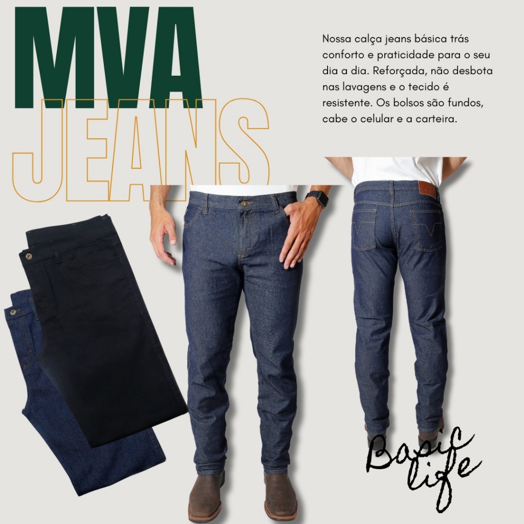 GUIA DE TAMANHO Tamanho Cintura Comprimento da perna Circunferência Cintura Gancho Quadril Coxa Barra 36 36 cm 107 cm 72 cm 26 cm 44 cm 27 cm 18 cm 38 38 cm 107 cm 76 cm 27 cm 46 cm 28 cm 19 cm 40 40 cm 108 cm 80 cm 28 cm 48 cm 29 cm 19 cm 42 42 cm 108 cm 84 cm 29 cm 50 cm 30 cm 20 cm 44 44 cm 108 cm 88 cm 30 cm 52 cm 30 cm 20 cm 46 46 cm 110 cm 92 cm 31 cm 54 cm 31 cm 21 cm 48 48 cm 110 cm 96 cm 31 cm 56 cm 32 cm 21 cm 50 50 cm 110 cm 100 cm 32 cm 58 cm 34 cm 22cm 52 52 cm 110 cm 104 cm 33 cm 60 cm 36 cm 22cm 54 54 cm 112 cm 108 cm 33 cm 62 cm 36 cm 22cm 56 56 cm 112 cm 112 cm 33 cm 64 cm 36 cm 23cm PRONTA ENTREGA - ENVIAMOS PARA TODO BRASIL - DIRETO DE FABRICA - FOTOS REAIS - TECIDO, MODELAGEM e ACABAMENTO PREMIUM. OBS: COMPARE AS MEDIDAS COM UM JEANS SEU. EM CASO DÚVIDAS ENTRE DOIS TAMANHOS SUGERIMOS PEDIR O MAIOR. LEMBRANDO QUE AS CALÇAS SÃO 100% ALGODÃO ELAS NÃO ESTICA . A MVA Jeans traz o que há de mais atual e moderno no mundo da moda, priorizando sempre a qualidade e o conforto. Procuramos não apenas atender às suas necessidades, mas superar suas expectativas. As Calças Masculina MVA Jeans 100% algodão são especialmente desenvolvidas para homens. Com uma modelagem diferenciada que se ajusta ao corpo de maneira confortável. Fabricadas com tecido resistente e ao mesmo tempo maleável, proporcionando um ajuste ideal a qualquer biótipo, além de ter um caimento arrojado. Própria para seu dia a dia de trabalho. DÚVIDAS FREQUENTES: 1 – É recomendado pegar um tamanho maior ou menor? Resposta: Não. Recomendamos comprar no tamanho utilizado normalmente. Lembrando que nossas calças são 100% algodão. Verifique também a tabela de medidas disponível nesse anúncio para auxiliar na escolha do tamanho correto. Em caso de dúvidas em dois tamanhos diferentes, sugerimos que compre o maior. 2 – Tem os produtos a pronta entrega? Em quanto tempo o produto será enviado? Resposta: Sim, temos todas as peças a pronta entrega para envio imediato. Após efetuar a compra, seu pedido será postado em até 24 horas uteis. 3 – O tecido é resistente? Resposta: Sim, nossas peças são fabricadas com tecidos resistentes que 100% algodão na composição para deixar ainda mais confortável.
