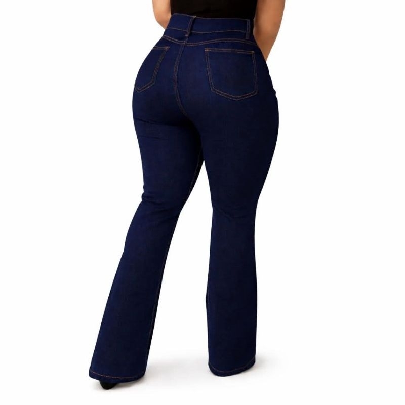 Calça Jeans Preta e azul Feminina Flare Cintura Alta com Elastano