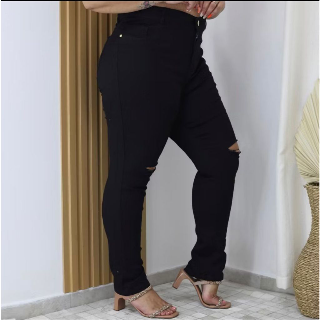 | Calça JEANS preto Plus Size rasgada no joelho, calça Feminina Linh... este produto | R$ 69,99 | — | 4.9/5 | 10 |