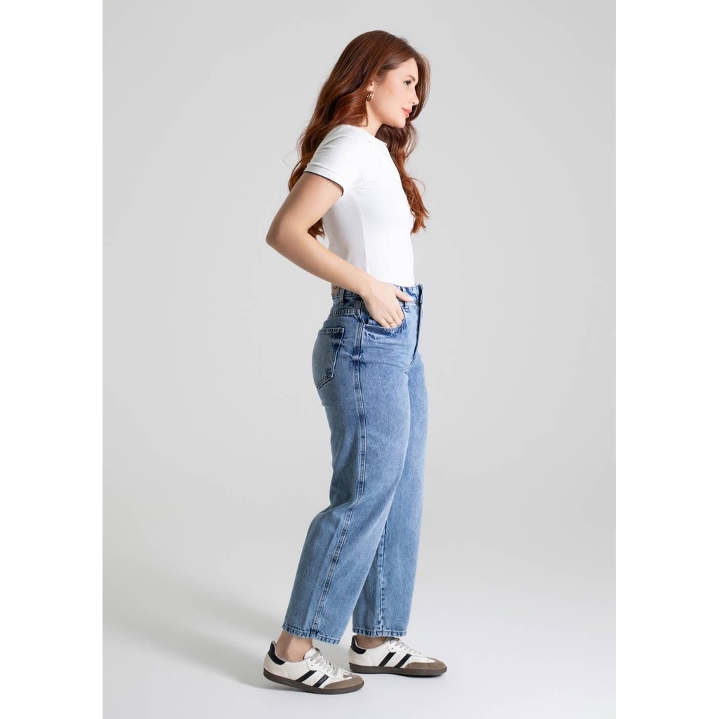 Calça feminina confeccionada em jeans. A peça tem a modelagem barrel, com o caimento é confortavel solto ao corpo. Cintura alta Fechamento através de um botão e zíper Bolsos frontais e posteriores funcionais Barra simples Tecido: Jeans Tipo de Lavagem: azul Cor: Azul Composição: 100% ALGODÃO Tipo de lavagem: PLUMA