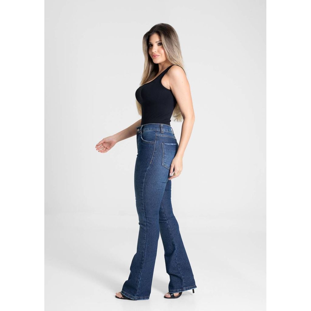 A modelagem boot cut tem o caimento ajustado nas pernas e levemente ampla barra. Cintura media Fechamento com botão e zíper Bolsos frontais falsos e posteriores funcionais Barra simples Modelagem: boot cut Tecido: Jeans Tipo de lavagem: Azul Cor: Azul médio Composição: 72% ALGODÃO 26% POLIÉSTER 2% ELASTANO