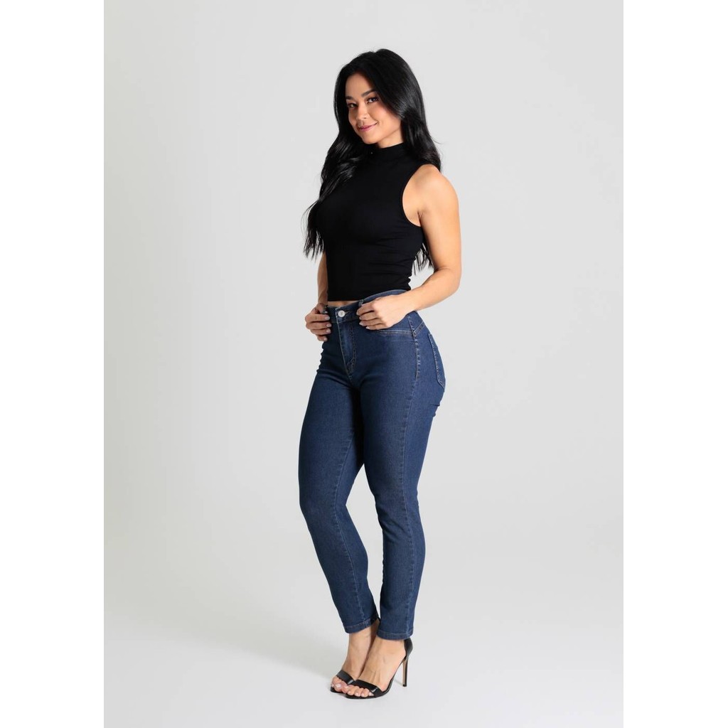 Calça feminina jeans heart. Modelagem coração, desenhada para valorizar o seu bumbum. Cintura média Fechamento com botão metálico e zíper Bolsos frontais falsos e bolsos traseiros funcionais Barra simples Modelagem: Heart Tecido: Jeans Tipo de lavagem: Azul Cor: Azul Médio Composição: 80% ALGODÃO 18% POLIÉSTER 02% ELASTANO