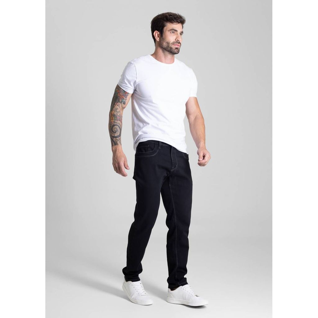 Calça slim confeccionada em jeans. Modelagem ajustada até a barra. Cintura média Fechamento com botão metálico e zíper Bolsos frontais e bolsos protetores Barra simples Modelagem: Men slim Tecido: Jeans Tipo de lavagem: Color Cor: Preto Composição: 72% ALGODÃO 25% POLIÉSTER 3% ELASTANO
