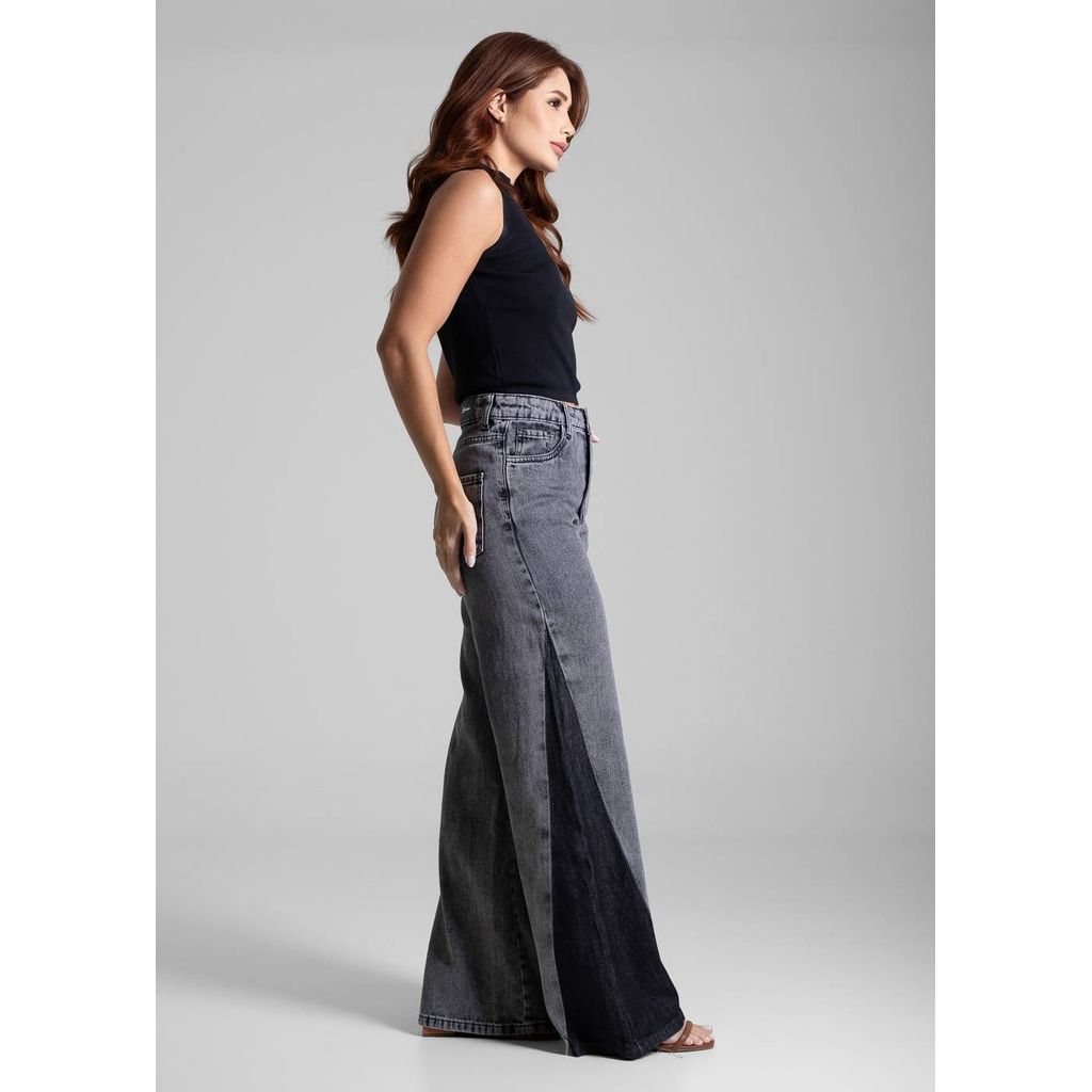 Calça feminina confeccionada em jeans. O modelo possui cintura super alta, gancho no lugar e caimento amplo da coxa até a barra. Cintura alta Fechamento através de um botão e zíper Bolsos frontais e posteriores funcionais Barra simples Tecido: Jeans Tipo de Lavagem: Color Cor: Preto Composição: 100% ALGODÃO Tipo de lavagem: LEDISTRI