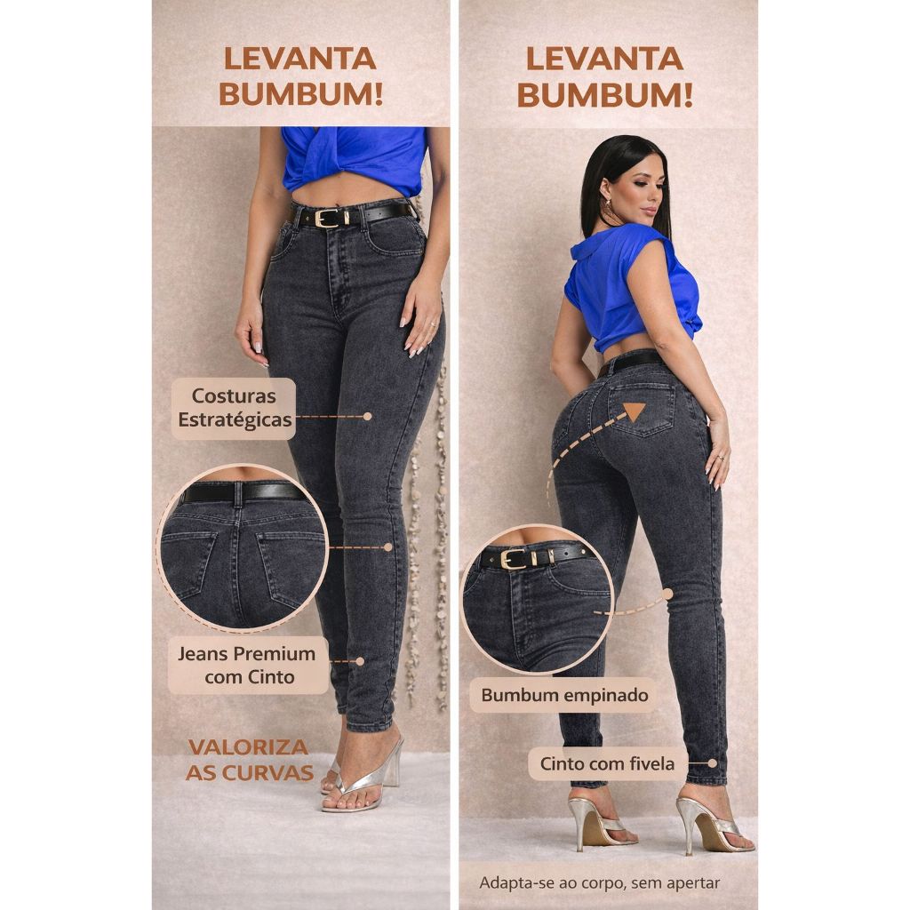 | Calça Jeans Skinny Premium Feminina Cós Alto Com Cinto Levanta Bumb... este produto | R$ 69,99 | 12% | 4.9/5 | 6 |