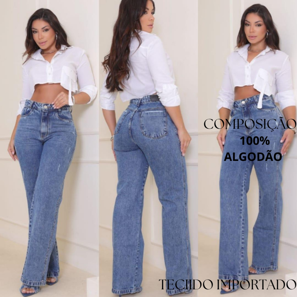 Calça Jeans Feminina Cintura Alta – 100% Algodão | Tecido Importado Essa calça é a união perfeita entre estilo, conforto e qualidade! Produzida com tecido 100% algodão importado, oferece um toque encorpado e resistente, ideal pra quem busca uma peça durável e com acabamento de alto padrão. A modelagem reta com leve abertura na barra valoriza todos os tipos de corpo, proporcionando um caimento impecável e elegante. A cintura alta ajuda a definir a silhueta, enquanto os bolsos traseiros estratégicos valorizam o bumbum. A lavagem jeans média com leves desgastes confere um visual moderno e versátil, ideal para compor looks do dia a dia ou até algo mais arrumado com salto e acessórios. Detalhes do produto: • 100% algodão (sem elastano) • Tecido importado de alta qualidade • Cintura alta que modela o corpo • Corte reto com leve flare • Lavagem média com puídos leves • Fechamento em zíper e botão • Bolsos funcionais Atenção: Por não conter elastano, recomendamos escolher um número maior que o habitual para maior conforto. Peça em alta procura – garanta a sua antes que acabe!