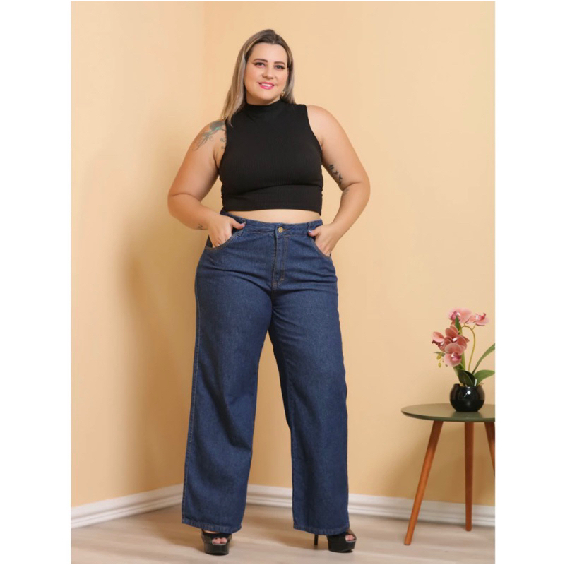 CALÇA JEANS WIDE LEG PLUS SIZE WID LEG PANTALONA 46 ao 56