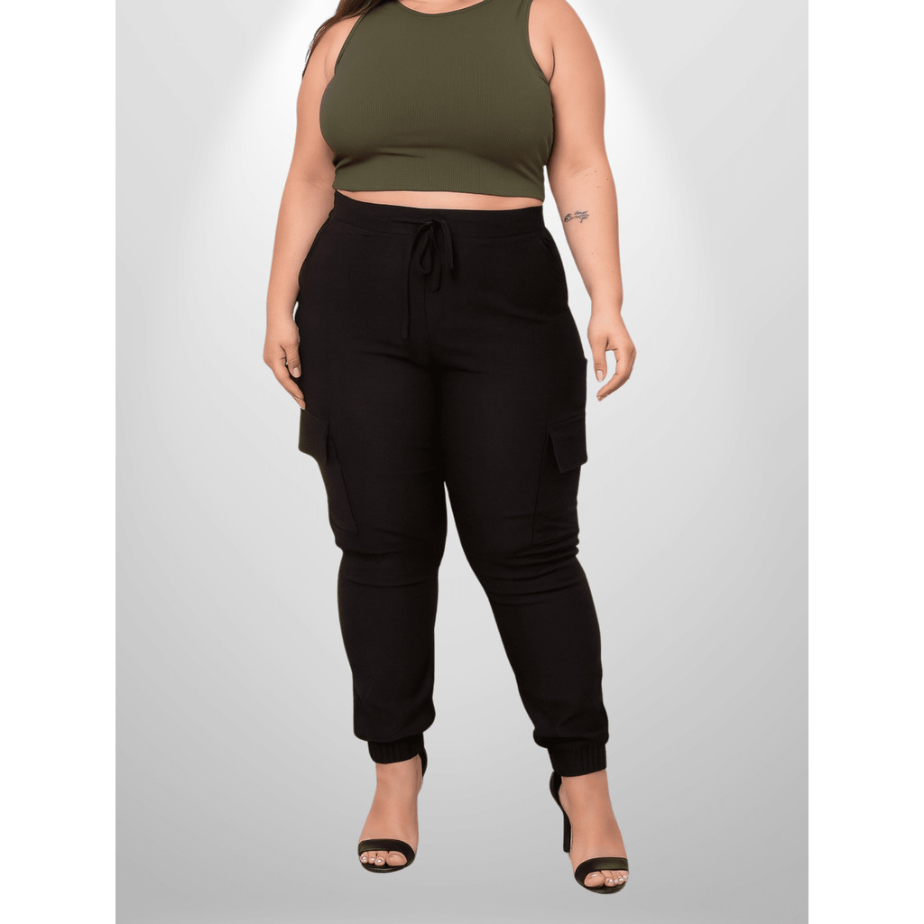 Calça Jogger Cargo Feminina Plus Size na cor preta