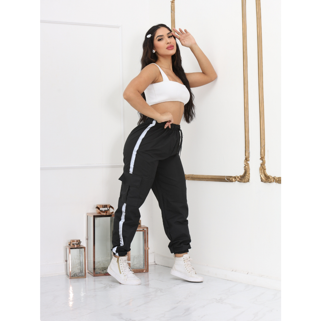 Calça Jogger Cargo Feminina TACTEL Com Faixas Refletivas e bolsos laterais