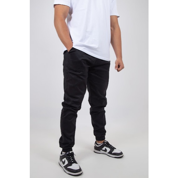 Calça Jogger Masculina Sarja ou jeans 4 bolsos com punho elástico streetwear swag diversas cores