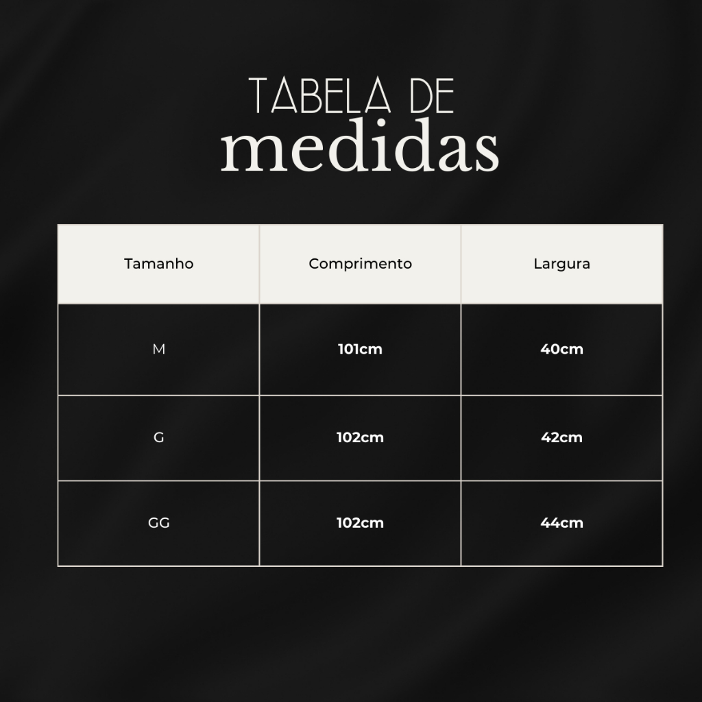 Sobre nós: A FlyWay é uma empresa de moda garantindo o máximo de estilo e conforto no seu dia a dia. COMPOSIÇÃO: 100% POLIÉSTER COMPOSIÇÃO DAS RISCADAS CLARA E ESCURA: 58% POLIESTER / 42% ALGODÃO • Tamanhos disponíveis: M, G e GG • Medidas: P: Comprimento: 99 cm / Largura: 38cm M - Comprimento: 101cm / Largura: 40cm G - Comprimento: 102cm / Largura: 42cm GG - Comprimento: 103cm / Largura: 44cm • Devido à medição manual, permita uma diferença de 1-3cm. PERGUNTAS FREQUENTES: Qual o tempo de envio? R: Enviamos em até 24h após a compra (dias úteis) Pode lavar na máquina? R: Sim! Porém, para maior durabilidade é recomendado: - Lavar a mão. - Não usar alvejante. - Não lavar a seco. - Não usar máquina secadora.