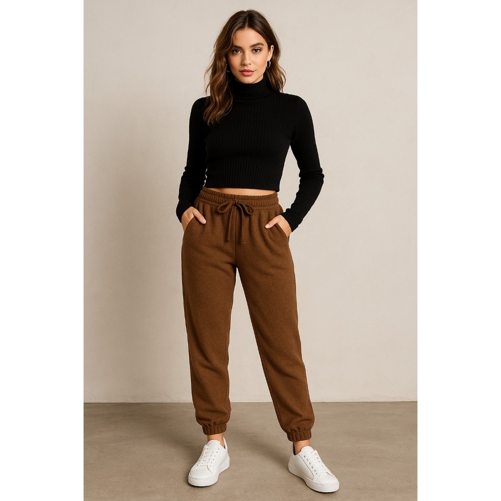 Uma calça jogger feminina de lãnzinha é uma escolha confortável e quentinha para usar em climas frios. Aqui está uma descrição detalhada: Material: Feita de lãnzinha, um tecido macio, quente e confortável, ideal para proteger contra o frio. A lãnzinha é conhecida por sua capacidade de reter o calor corporal, mantendo-o aquecido em temperaturas mais baixas. Estilo Jogger: A calça jogger é caracterizada por seu estilo casual e atlético, com punhos elásticos nas pernas e cintura, proporcionando um ajuste confortável e descontraído. A parte inferior mais ajustada contrasta com o ajuste mais solto na área dos quadris e coxas, criando um visual moderno e despojado. Elástico na Cintura: A presença de elástico na cintura oferece conforto e praticidade ao vestir a calça, permitindo um ajuste personalizado e seguro. Além disso, o elástico na cintura torna a calça jogger fácil de vestir e tirar, proporcionando liberdade de movimento durante o uso. Quentinha: Devido ao seu material de lãnzinha, a calça jogger é quente e aconchegante, mantendo as pernas aquecidas mesmo nos dias mais frios. Isso a torna uma escolha ideal para uso em ambientes com baixas temperaturas ou como uma opção de roupa de inverno 21/02/2024 18:56:41