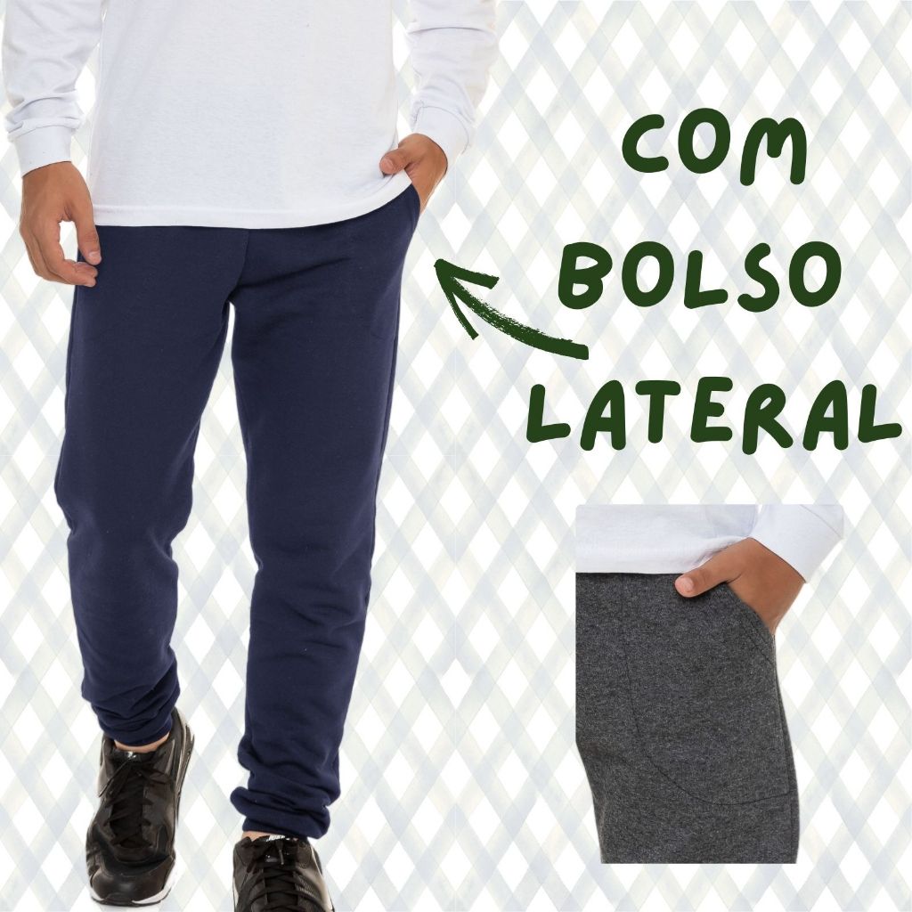 Calça Juvenil Masculina de Moletom Peluciado Com Cós (Barra) e Punho em Ribana – Conforto e Proteção nos Dias Frios Essa calça juvenil masculina de moletom peluciado é perfeita para quem quer se manter aquecido e confortável nos dias frios. Feita com um tecido macio e aconchegante, proporciona uma sensação gostosa ao vestir, além de permitir liberdade de movimento para todas as atividades do dia a dia. Sua composição de 75% algodão e 25% poliéster garante um toque suave na pele e maior resistência para o uso diário. O modelo conta com elástico na cintura, o que proporciona um ajuste firme e confortável sem apertar. Os punhos ajustados no tornozelo ajudam a manter o calor e dão um caimento moderno à peça. Além disso, os bolsos laterais são muito práticos para guardar pequenos objetos ou simplesmente manter as mãos aquecidas. Como Usar? Para um look casual, combine com camisetas e tênis. Em dias mais frios, use com um moletom ou jaqueta para maior proteção. Ótima opção para ficar confortável em casa, estudar ou passear. Principais Vantagens: - Tecido de moletom peluciado, macio e quentinho.- Elástico na cintura para um ajuste seguro e confortável.- Punhos ajustados no tornozelo para melhor caimento.- Bolsos laterais para mais praticidade.- Material resistente, ideal para o uso diário. Adquira já essa calça e garanta mais conforto e estilo para qualquer ocasião. Tabela de Medidas: Tamanho 10: Largura 38cm Comprimento: 80cm Tamanho 12: Largura 40cm Comprimento: 85cm Tamanho 14: Largura 42cm Comprimento: 90cm Tamanho 16: Largura 44cm Comprimento: 95cm * Medidas podem sofrer pequenas variações no momento da costura.