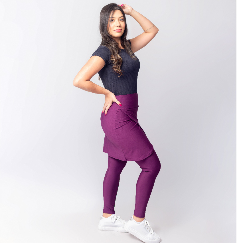 Calça Leg Com Saia Moda Fitness Evangélica Transpassada