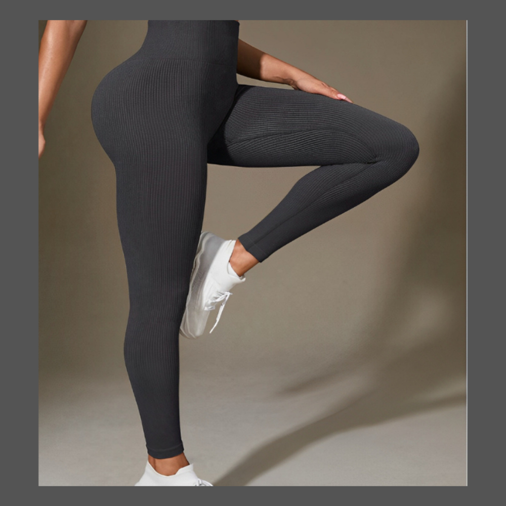 Calça Legging Canelada de Cintura Alta Com Costura Realça Bumbum para Academia Feminina, Elástica e Fitness