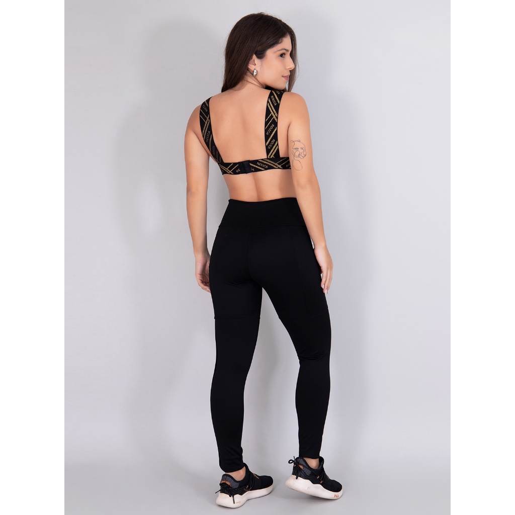 Calça Legging Cintura Alta de Poliamida Rocca Gold Pocket