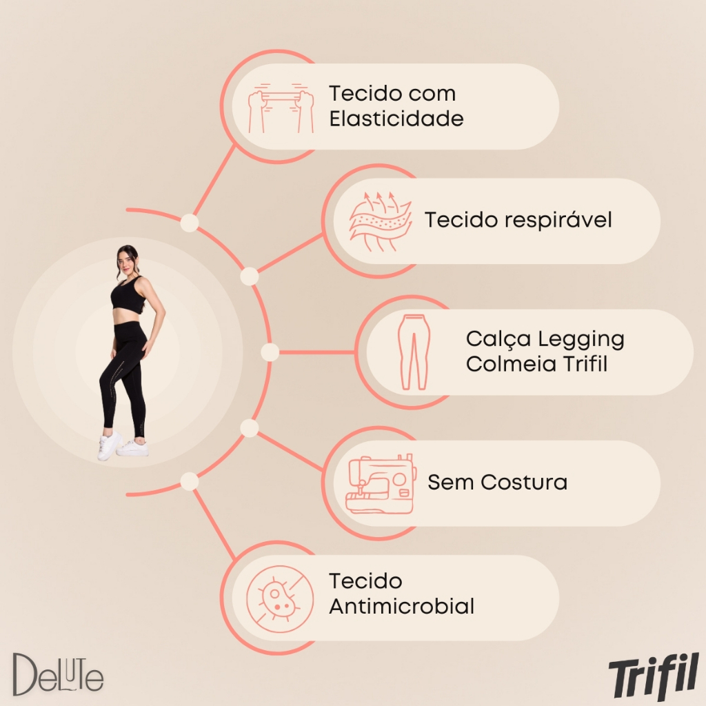 Calça Legging Colmeia Trifil S/ Costura Feminina Academia Esportiva Fitness Alta Performance Adulto
