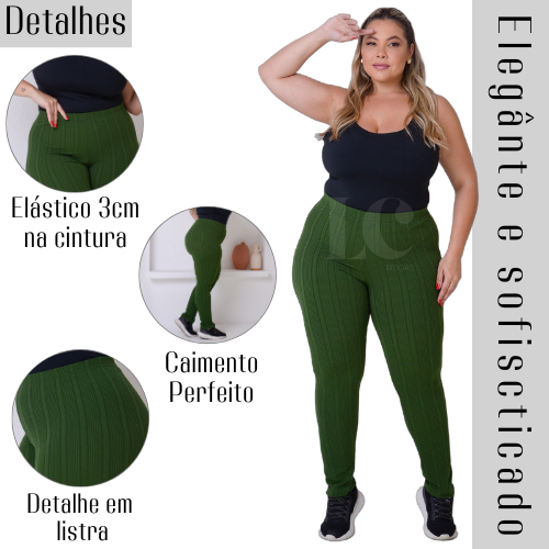 CALÇA LEGGING PLUS SIZE FEMININA Se você está em busca de uma calça que trás conforto e estilo para o seu dia-a-dia, você está no lugar certo. Nossa coleção de calças femininas oferece uma ampla gama de opções para todas as ocasiões e gostos. 🚚 ENVIO EM 24 HORAS APÓS A COMPRA 🚚 🟢Sobre o produto: - Material: Tecido Canelado - Tamanhos disponíveis: GG, G1 e G2 - Cores disponíveis: Preto, Verde Militar e Terra Cota 🟢Diferencial do nosso produto: - Não fica transparência - Elástico na Cintura - Nossas calças são confeccionadas com tecido canelado de alta qualidade - Durabilidade e conforto ao longo do uso. - Cintura alta, fazendo a modelagem perfeita do seu corpo - Em estilo 3D único e exclusivo da nossa calça 🟢Tabela de Tamanhos: Tamanho | Cintura | Quadril | Comprimento GG 100 cm 80 cm 95 cm G1 105 cm 84 cm 97 cm G2 106 cm 88 cm 98 cm 🟢Perguntas frequentes: - Tecido é transparente? Não. - Posso comprar de tamanhos diferentes/cores diferentes no mesmo pedido? Sim, basta adicionar individualmente no carrinho. - Comprei, quando será enviado? Imediatamente, em 24 horas úteis. - As fotos são em modelo real? Qual medida a modelo usa? Sim, fotos reais. A modelo usa G2. 🟢 Dicas para Conservação: - Lave com sabão neutro e água, evitando alvejantes e detergentes fortes. - Evite máquinas de lavar e excesso de água para preservar a integridade das calças. - Alterne o uso das calças para garantir sua durabilidade. - Seque à sombra e evite exposição ao calor excessivo. - Para manter a frescura, deixe as calças descansarem em local arejado após o uso. 🚚Envio Super Rápido!🚚 💭Qualquer Dúvida, estamos a sua disposição no chat!💭