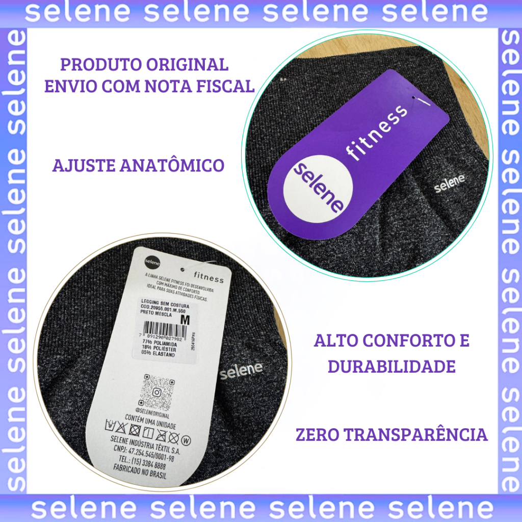 Calça Legging Fitness Selene Sem Costura Zero Transparência 20955.001 A Calça Legging Fitness Selene foi desenvolvida para oferecer máximo conforto, sustentação e liberdade de movimento. Seu design sem costura proporciona ajuste perfeito ao corpo e evita marcas na pele, ideal para treinos, corridas e o dia a dia. Destaques do Produto Tecnologia Sem Costura: mais conforto e mobilidade durante os movimentos Push Up: Levanta e empina o bumbum Zero Transparência: tecido encorpado e seguro, ideal para qualquer tipo de treino Cós Alto Anatômico: modela a cintura e proporciona firmeza Toque Macio e Respirável: ideal para o uso prolongado Compressão Moderada: realça a silhueta e garante suporte muscular Composição do Tecido Poliamida e Elastano — combinação que garante elasticidade, durabilidade e conforto térmico. Tamanhos Disponíveis P, M, G e GG (Verificar tabela de tamanhos nas fotos do anúncio) Cuidados com o Produto Lavar à mão ou em ciclo delicado Não usar alvejante Secar à sombra Não passar Marca Selene — referência em conforto e qualidade em moda íntima e fitness há mais de 70 anos. CORES: PRETO MESCLA E AZUL MESCLA