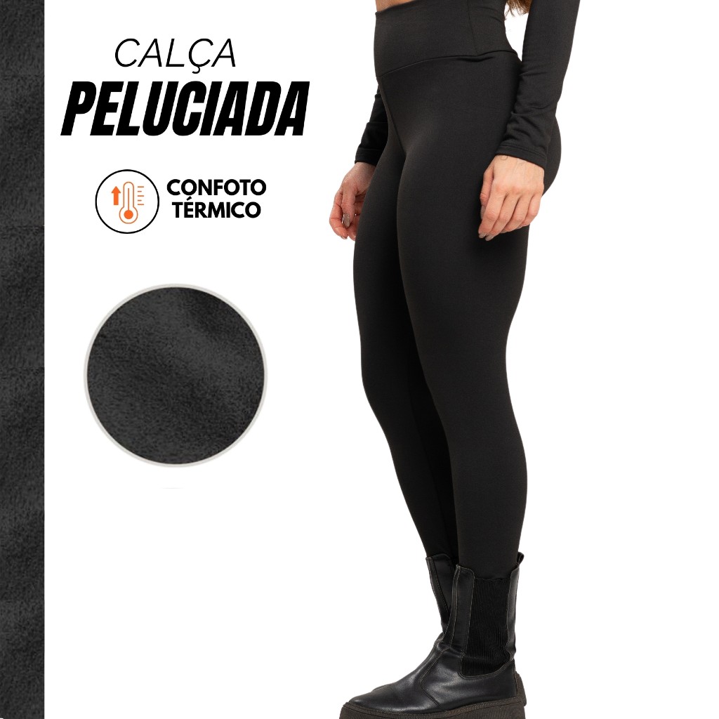 Calça Legging Lisa Peluciada Flanelada Outono Inverno Moda Feminina