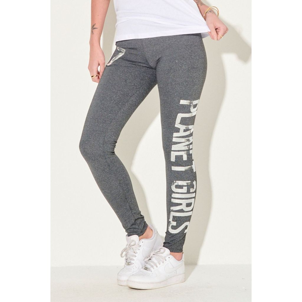 Calça Legging Malha Paetê Planet Girls Mescla Escuro