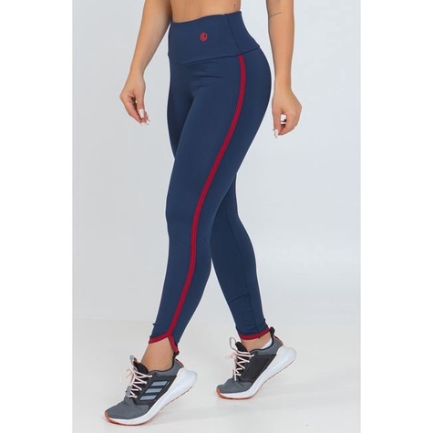 Calça Legging Marinho Viés Academia Zero Transparência Alta Compressão Proteção UV50+ Tecnologia Dry