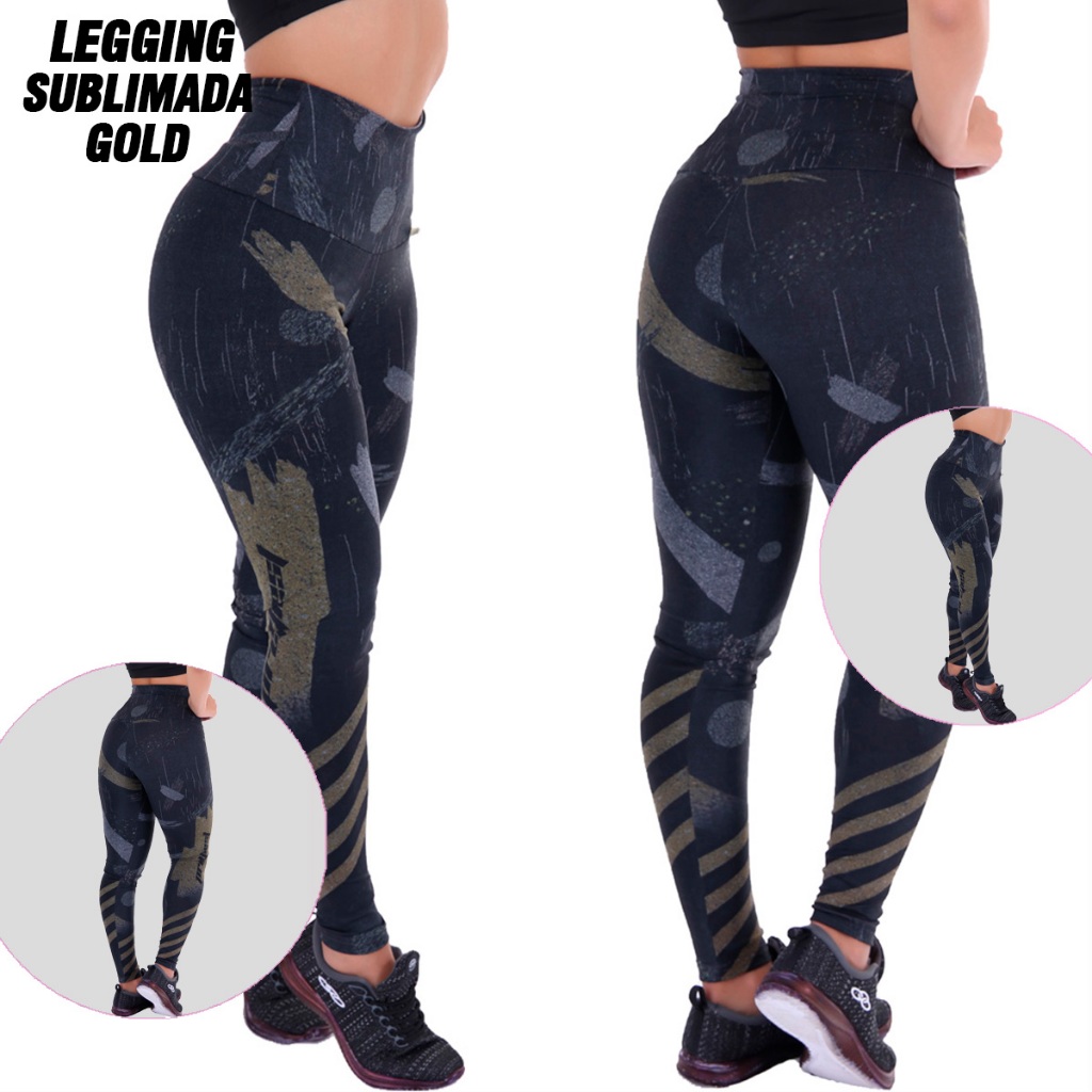Calça Legging Sublimada Cós Alto 0% Transparente Cintura Alta