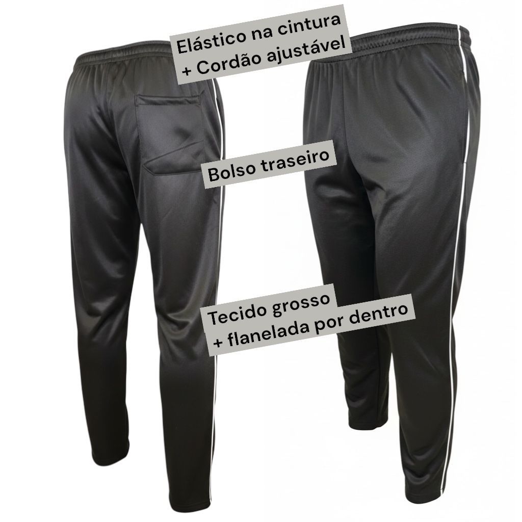 Se você busca uma calça versátil para o dia a dia, academia ou lazer, acabou de encontrar. Nossa calça de chimpa combina um corte moderno com a praticidade que o homem moderno precisa. Tecido Grosso, flanelada por dentro e possui um bolso traseiro. Por que escolher nossa Calça? Tecido Premium: Chimpa resistente, leve e de secagem ultra rápida. Design Esportivo: Listra lateral que alonga a silhueta e dá um toque moderno. Ajuste Perfeito: Cós com elástico reforçado que se adapta ao corpo sem apertar, com cordão de ajuste interno na cintura. Praticidade: Ideal para treinos, caminhadas ou um look casual confortável. Acabamento: Costuras reforçadas para maior durabilidade. 📏 Guia de Tamanhos (Medidas Lineares): (Dica: Compare com uma peça que você já tenha em casa) P (veste 36/38): Cintura 34cm | Largura 50cm | Comprimento 101cm M (veste 40): Cintura 36cm | Largura 52cm | Comprimento 102cm G (veste 42): Cintura 38cm | Largura 54cm | Comprimento 103cm GG (veste 44/46): Cintura 40cm | Largura 56cm | Comprimento 105cm As medidas da cintura são sem esticar o elástico. Considere uma variação de até 2cm devido à medição manual. Se você gosta da calça mais solta no corpo, pode pedir um número maior. ❓ Perguntas Frequentes: O tecido encolhe ou desbota? Não! A chimpa de alta qualidade mantém a cor e o tamanho original após as lavagens. Possui bolsos? Sim, possui bolsos laterais práticos para carregar celular ou chaves. E um bolso traseiro. Qual o prazo de envio? Enviamos em até 24h úteis após a confirmação do pagamento! 📦 O que você recebe: 01 Calça Masculina na cor escolhida. Garantia de Satisfação: Caso não sirva ou não goste, a Shopee garante a sua devolução gratuita! Ficou com alguma dúvida? Chame a gente no chat, respondemos rapidinho!