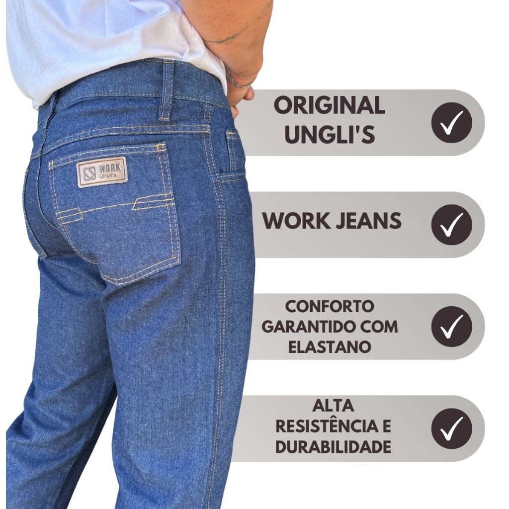 Calça Masculina Jeans de Serviço – REF. 520 | Unglis Jeans Tamanhos: 36 ao 60 Resistência e conforto para o trabalho e o dia a dia! A Unglis Jeans, com mais de 13 anos de tradição, oferece jeans de qualidade com fabricação própria e preço justo. A Ref. 520 é a escolha ideal para quem busca praticidade, durabilidade e estilo discreto para o trabalho, uniforme ou uso casual. Por que escolher a Calça REF. 520? ✅ Modelagem básica e versátil – combina com qualquer ocasião. ✅ Tecido firme e durável – pronto para o uso diário intenso. ✅ 5 bolsos funcionais – 2 frontais, 1 relógio e 2 traseiros, perfeitos para ferramentas ou acessórios. ✅ Lavagem amaciada – máximo conforto durante o dia todo. ✅ Ideal para serviço, uniforme ou lazer – resistente sem abrir mão do conforto. ✅ Fabricação própria Ungli’s – padrão de qualidade que você confia. 📋 Especificações Técnicas: Referência: 520 Marca: Unglis Jeans Gênero: Masculino Material: Jeans 100% algodão Cor: Azul jeans tradicional Bolsos: 5 (2 frontais, 1 relógio, 2 traseiros) Modelagem: Reta, básica, confortável Pronta entrega - Fotos reais do produto A calça certa para trabalhar com conforto, durabilidade e estilo!