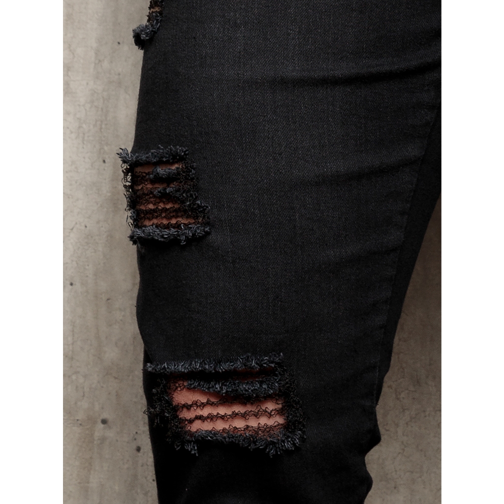 Calça Masculina Jeans Skinny Justa Na Perna C/ Lycra Premium preto rasgar
