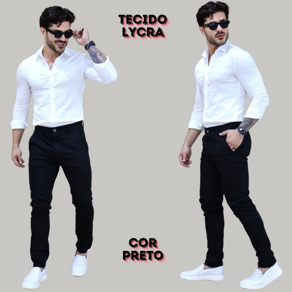 Nossa calça é uma peça ideal para o vestuário de todo homem. Versátil e confeccionada a partir de um tecido durável , que é caracterizado por sua densidade e resistência. Nossas calças sarja social são populares tanto por sua aparência casual quanto por sua capacidade de resistir ao desgaste do uso diário. Benefícios: Corte e Silhueta ajustáveis ao corpo; Lavagem e Cor resistentes, não se desgastando conforme o tempo; Costuras e Detalhes bem construídas, que garantem durabilidade; Bolsos laterais e traseiros, bordados e resistentes Conforto e Durabilidade, tecido resistente que tende a ficar mais confortável com o uso e se moldar ao corpo do usuário; Especificações: -Possui 2 Bolsos Laterais e 2 Traseiros; -97% algodão / 3% DE Elasticidade CALÇA PRETA CALÇA CHINO IDEAL PARA VARIAS OCASIÕES TRABALHO FESTAS CASAMENTO DIA A DIA FOTOS IDÊNTICAS AO PRODUTO ADQUIRA JÁ A SUA PARA VARIAS OCASIÕES
