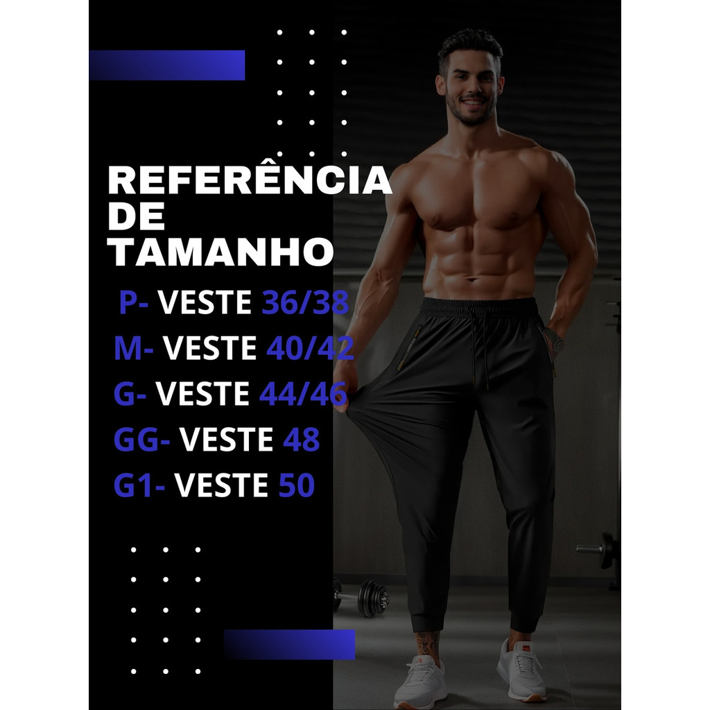 | Calça Masculina Tactel Jogger Esportiva Academia Slim Treino este produto | R$ 47,97 | 40% | 4.8/5 | 762 |