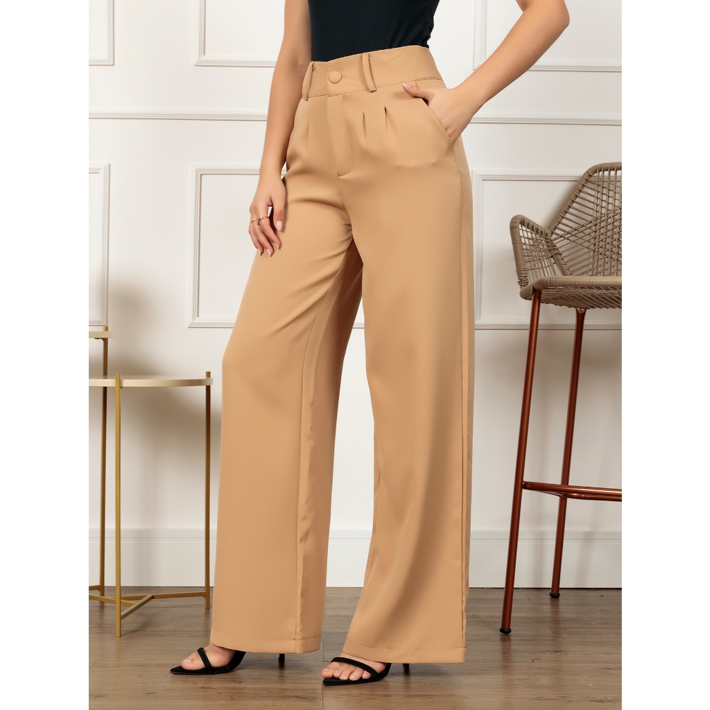 Calça Pantalona Alfaiataria Feminina | Cintura Alta Com Pregas Conforto & Estilo P ao G3