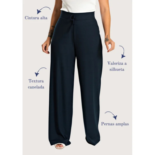 Calça Pantalona Canelada Wide Leg Caimento Perfeito - Tecido Ribana Canelada, Toque Leve e Macio