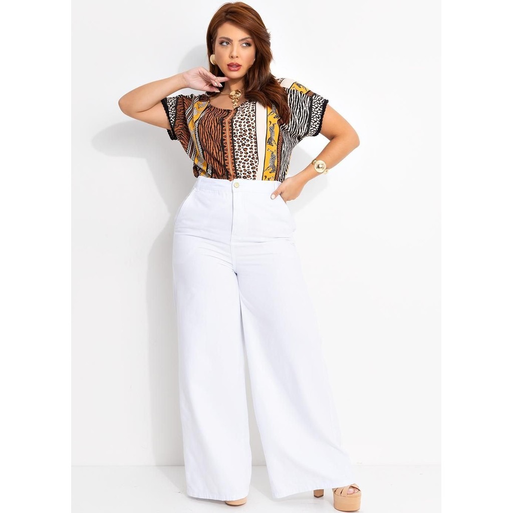 Calça Pantalona Com Bolsos Branco Quintess