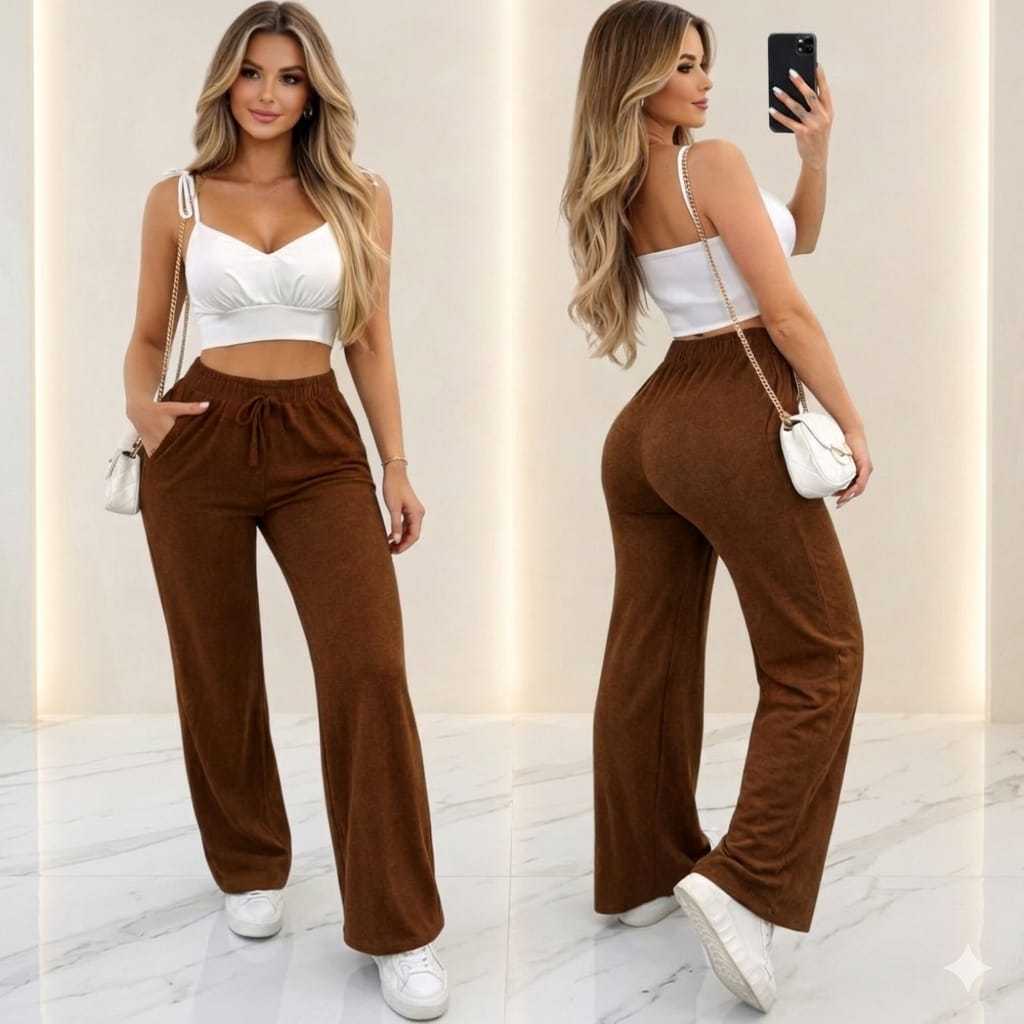 Calça Pantalona De Lazinha Feminina Cintura Alta Com Bolso Super Quetinho Pra Inverno