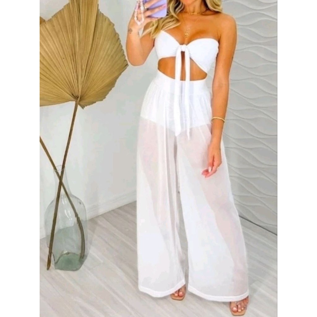 Calça Pantalona Em Tule Lua Com Forro Tecido Premium