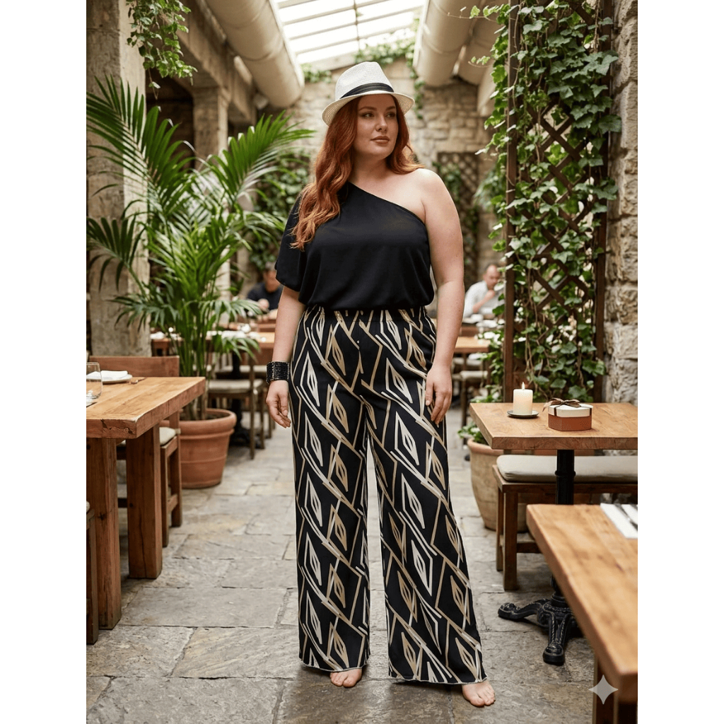 Calça Pantalona Estampada Plus Size