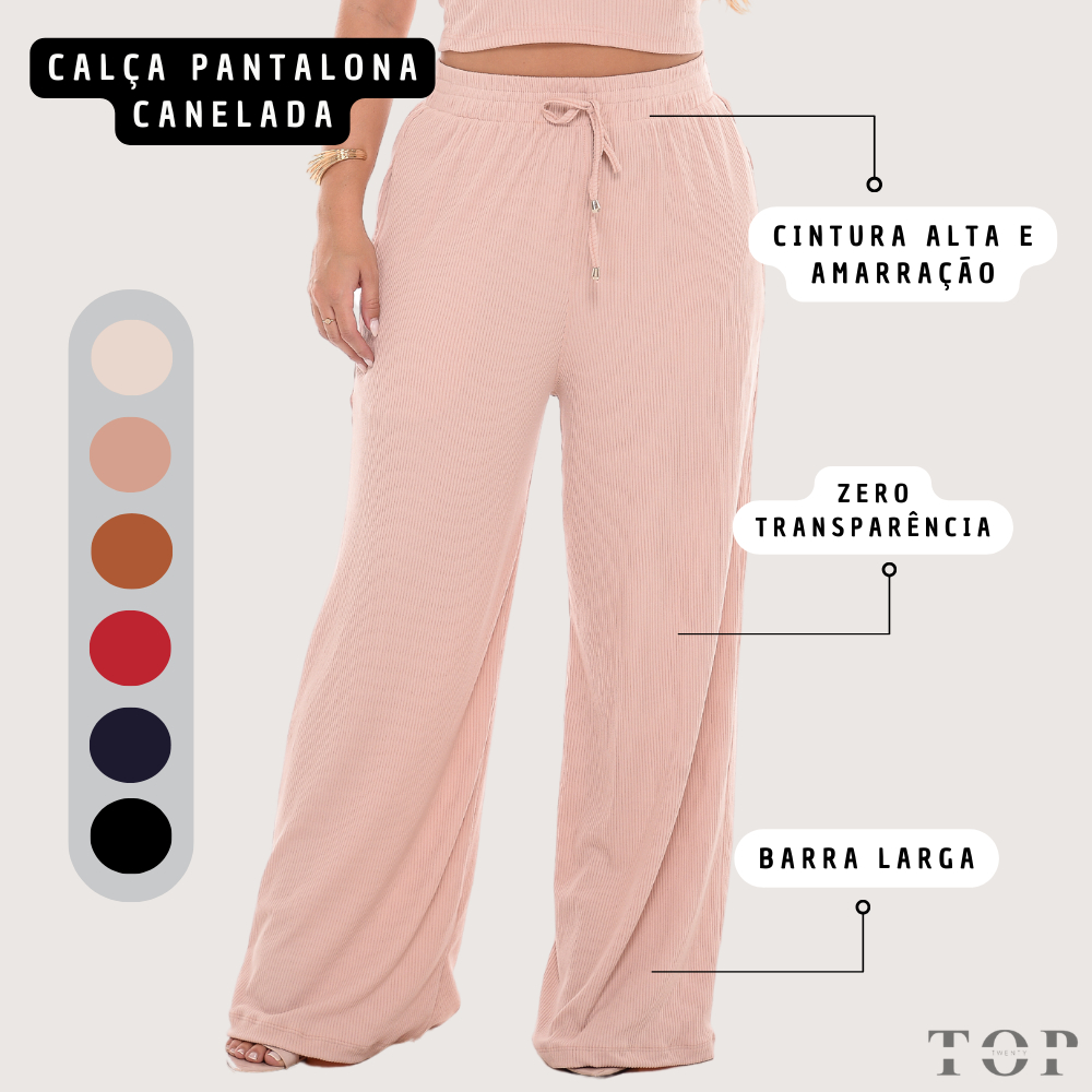 | Calça Pantalona Feminina Canelada Com Bolso e Elástico e Cordão Cin... este produto | R$ 41,99 | 58% | 4.8/5 | 214 |