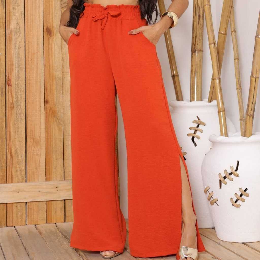 Calça Pantalona Feminina Cintura Alta Elástico Plus Size M ao G2 Casual Elegante