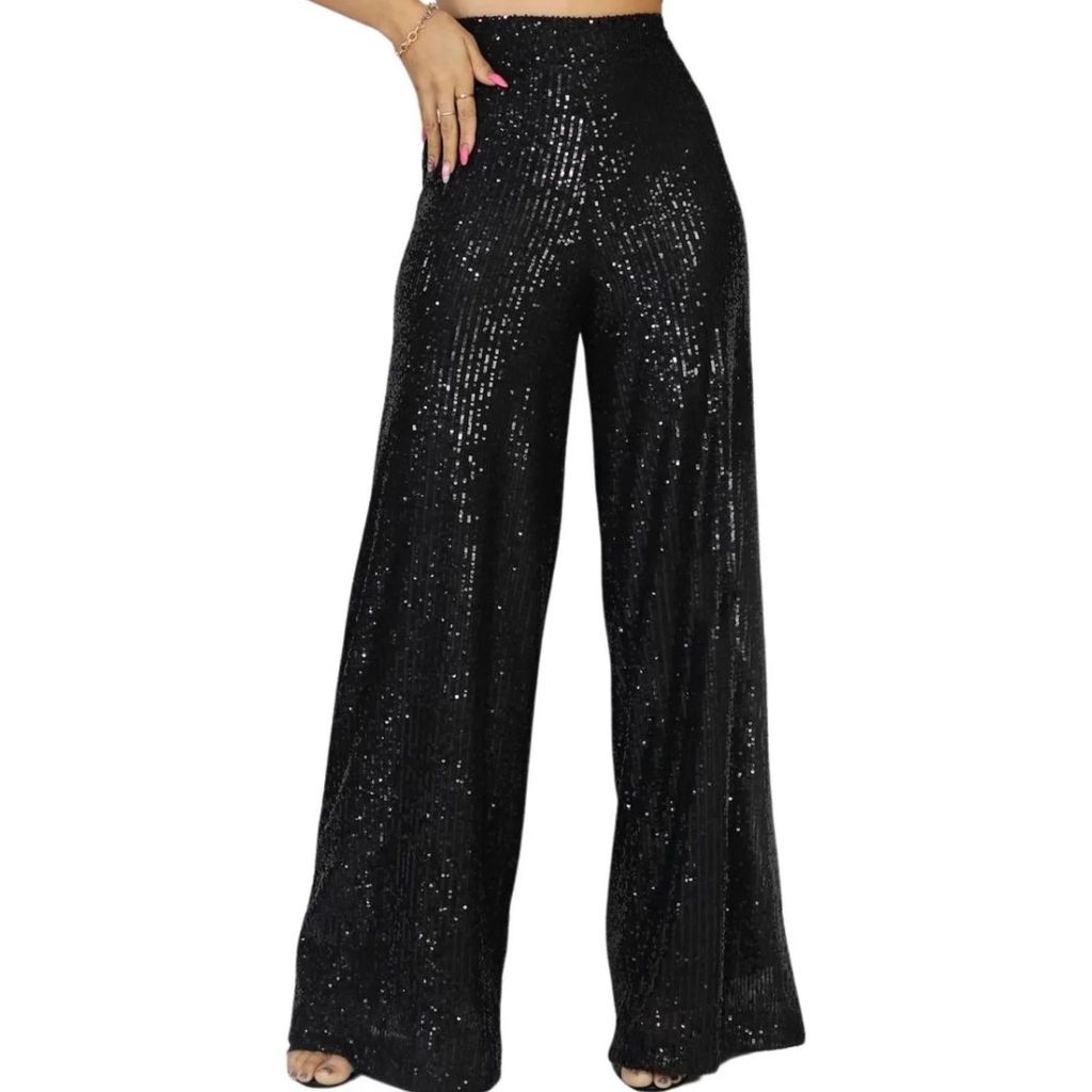 Calça Pantalona Feminina Para Festas Paetê Brilho Promoção