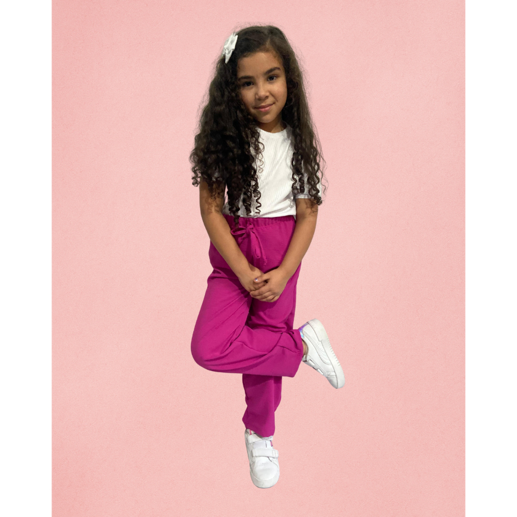Calça Pantalona Infantil/Juvenil Feminina - Cores Rosa, Preta e Lilás Esta calça pantalona é a escolha perfeita para garotas modernas e estilosas! Com design solto e confortável, ela proporciona liberdade de movimento e um toque fashion ao look. Disponível nas cores rosa, preta e lilás, é fácil de combinar com diversas peças, criando desde um visual mais casual até algo mais sofisticado. Feita em tecido duna que é leve e macio, ideal para qualquer estação, essa calça possui cintura alta com elástico ajustável, garantindo conforto ao longo do dia. As pernas amplas e fluídas conferem um charme único e fazem dessa peça uma opção versátil para passeios ou momentos especiais. Cor Preta: Uma cor básica para combinar com qualquer peça de roupa e montar varios looks incriveis com sua princesinha, podendo mesclar com algo mais basico ou cores mais ousadas podendo sempre ter uma combinação tanto social quanto para algo mais descontraido. Cor Lílas: Algo mais fashionista para que sua princesa chame a atenção por onde passe tambem facil de fazer combinações podendo ser usada em festas, passeios e etc... Cor Rosa: Uma cor mais colorida para que sua princesa se sinta num conto de fadas com um rosa chamativo se sentindo ainda mais princesa por onde passar, algo que tanto usado de forma casual ou até mesmo mais serio vai resultar em ótimas combinações para o passeio de sua princesa. Pedimos encarecidamente que antes de efetuar a compra e até mesmo o pagamento se atentem a tabela de medida para não terem nenhum problema com o tamanho das peças. Tabela De Medidas: 4: Largura: 30cm Comrpimento: 58cm 6: Largura: 32cm Comrpimento: 65cm 8: Largura: 34cm Comrpimento: 73cm 10: Largura: 36cm Comrpimento: 83cm 12: Largura: 39cm Comrpimento: 86cm Desde já avisamos que não autorizamos o uso das nossas imagens por terceiros e agradecemos o repeito em relação a isso!