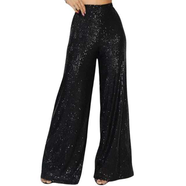 Calça Pantalona Paete Toda Forrada Feminina Cintura Alta P ao GG Festa Elegante Brilho Estilosa