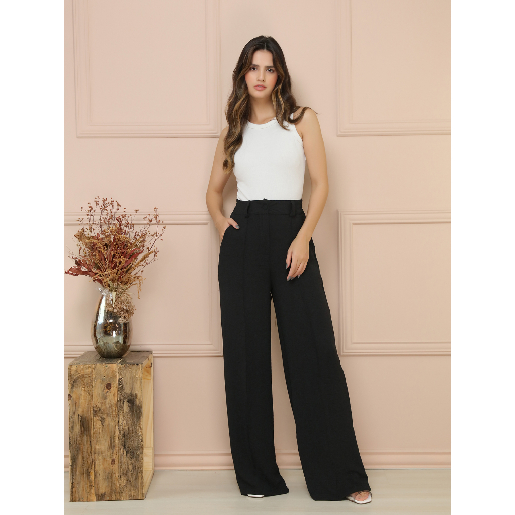 calça pantalona tecido de Duna maravilhosa ela estica com cintura alta 8097