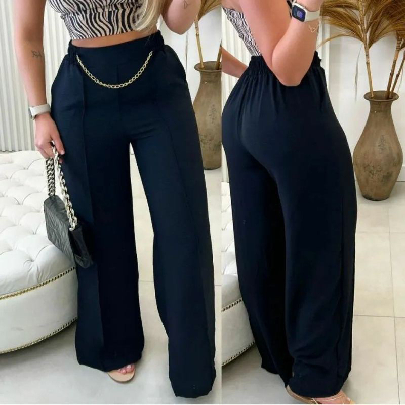 Qual o preço de Calça Pantalona Tecido Duna Com Corrente Veste M G e GG?