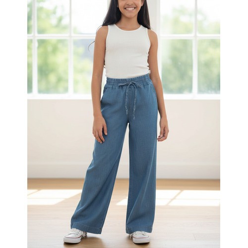 Calça Pantalona Wide Leg Infantojuvenil Com Elástico P Ao Gg